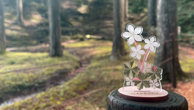 佐川町出身の植物博士である牧野富太郎が愛したバイカオウレンをイメージしたコマをデザインしました。